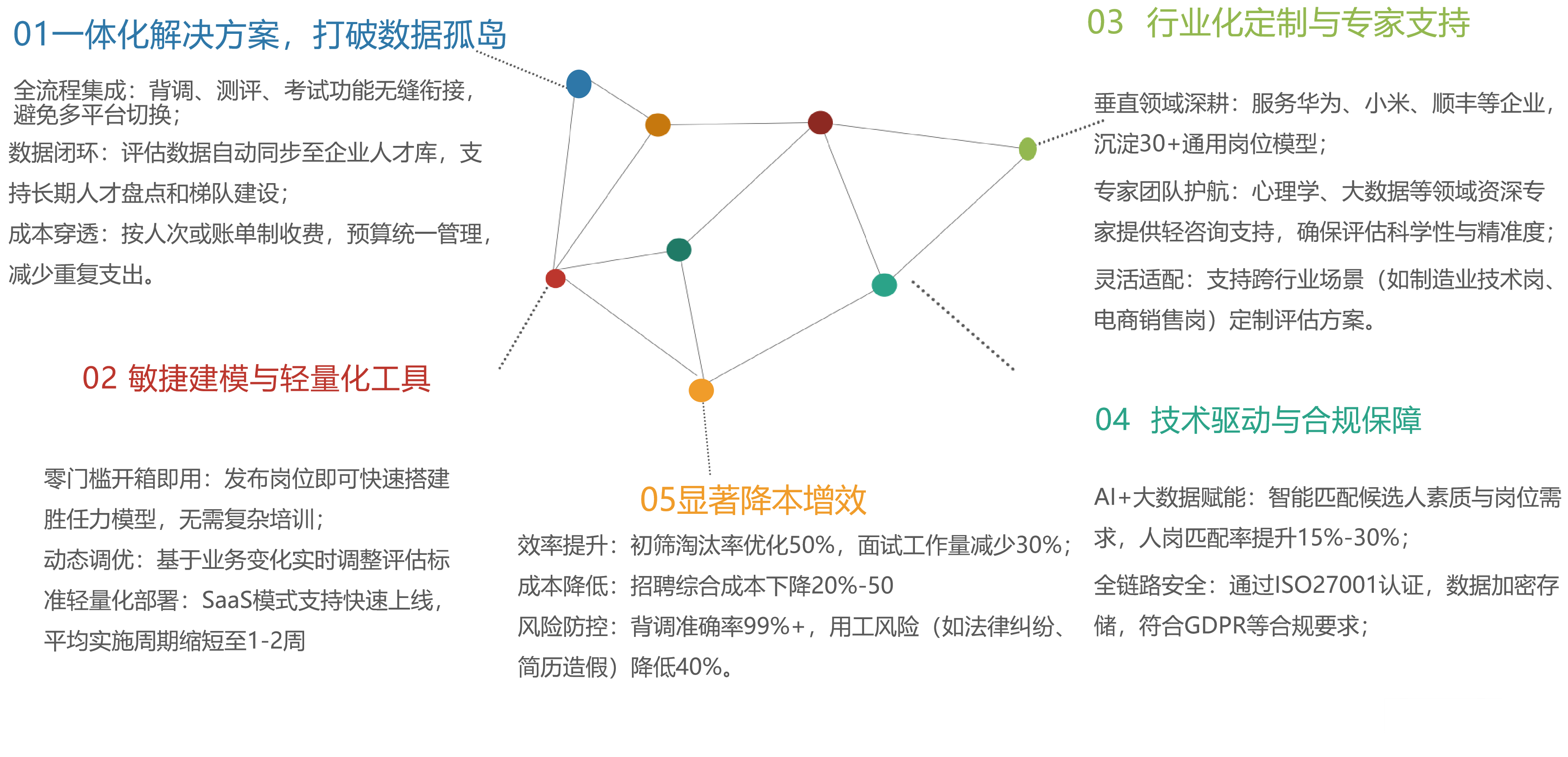 内置500+万人次数据的测评模型库(如彩虹领导力、大五人格),提供科学的面试建议,支持敏捷搭建岗位胜任力模型。